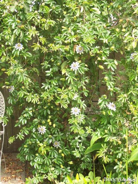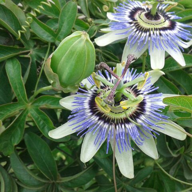 میوهاش سبز و زرد رنگ است. این گیاه حاوی فلاونوئید و آلکالوئیدهای گروه هارمالا Harmalaواسیدسیانیدریک، در میوهٔ آن اسید سیتریک و نیز دارای پرولین، مالتول و اتل مالتول است. قسمت مورد استفاده: از برگ و میوه و گلهای گیاه پاسیفلور استفاده داروییبهعمل میآید.