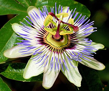 پیچ ساعتی بالا رونده با رشد سریع که طول آن 10 متر هم می رسد. گلها با یک ردیف گلبرگ سفید و جذاب با کاسبرگ ها و رشته های آبی سفید و ارغوانی رنگ که به صورت تاجی در مرکز قرار گرفته اند. برگها پنجه ای با پنج تا هفت برگچه .
