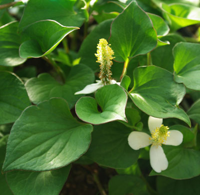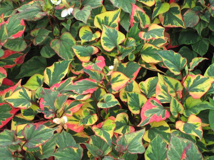 گیاه هوتوینیا کورداتا (هوتانیا) با نام علمی : Houttuynia cordata(خزاندار)_توج دلشته باشید که هوتانیا گیاهی دایمی با ریشه غده ای و در پاییز و زمستان کاملا بی برگ و ساقه است.