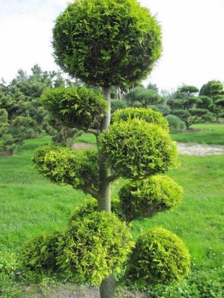 با توجه به ساختار گیاه و مترام بودن برگ ها و شاخه ها و همچنین رشد مطلوب کاج لاوسون با سلیقه و صرف حوصله اشکال زیبایی از آن پدید آورد که در محوطه ها به عنوان یک گیاه کانونی چشم ها را خیره می کند.