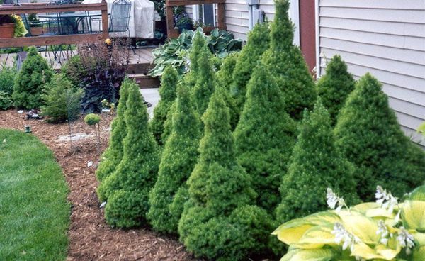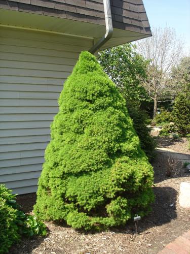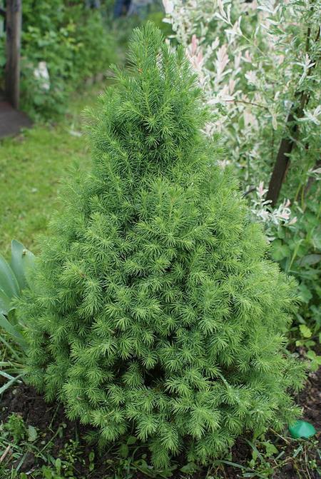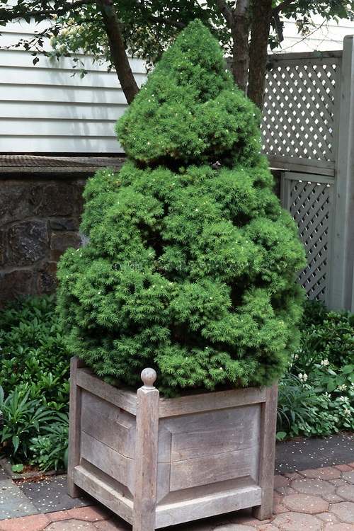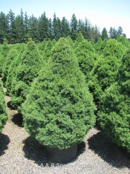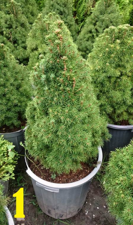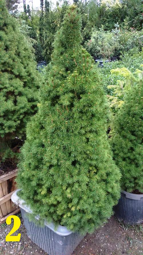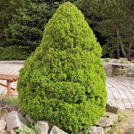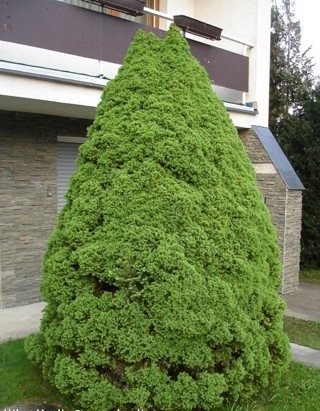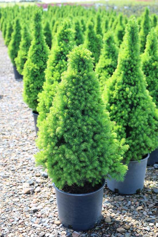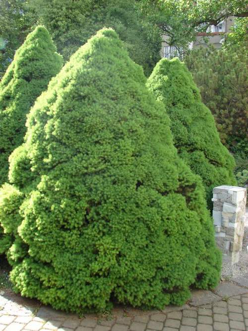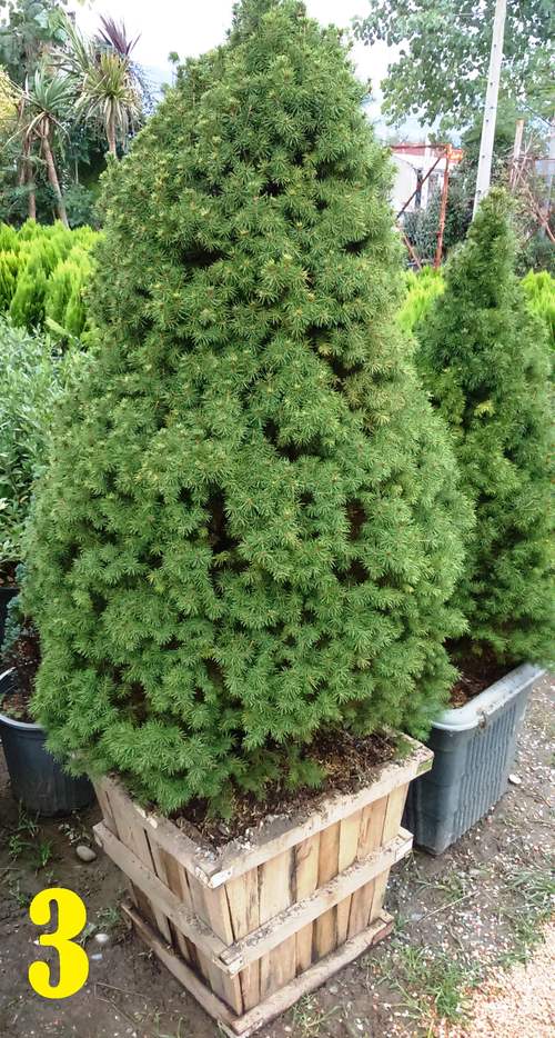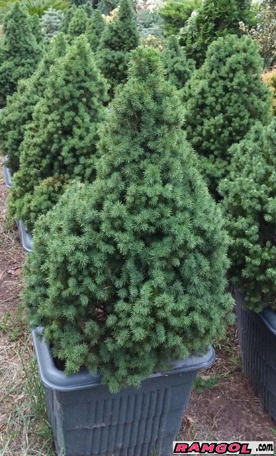 کاج کونیکا -این درخت کند رشد بسیار زیبا و دارای برگهایی بشکل سوزن های کوتاه میباشد که به حالت کروی و مخروطی با نظم خاصی در کنار یکدیگر قرار گرفته اند.و مانند کوه سبز دیده می شود و این گیاه بسیار کندرشد بوده و به عنوان درخت کند رشد معروف است.