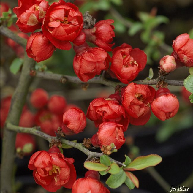 مشاهده شکوفه های خوش رنگ در درختچه کوچک و گرد به ژاپنی در اواخر زمستان آمدن بهار را نوید می دهد. این شکوفه ها به مدت حدود 10 روز باز هستند و سپس فرم خشن درختچه با شاخه های سخت و معمولا تیغدار و برگهای سبز تیره نمایان خواهند شد. این گیاه از گیاهان به اصطلاح سیاه ریشه محسوب میشود.