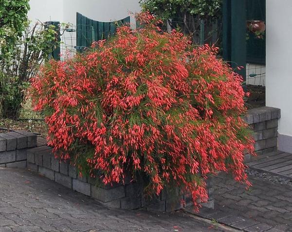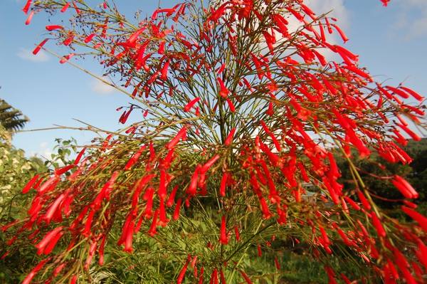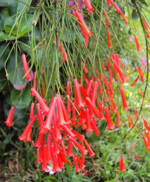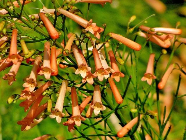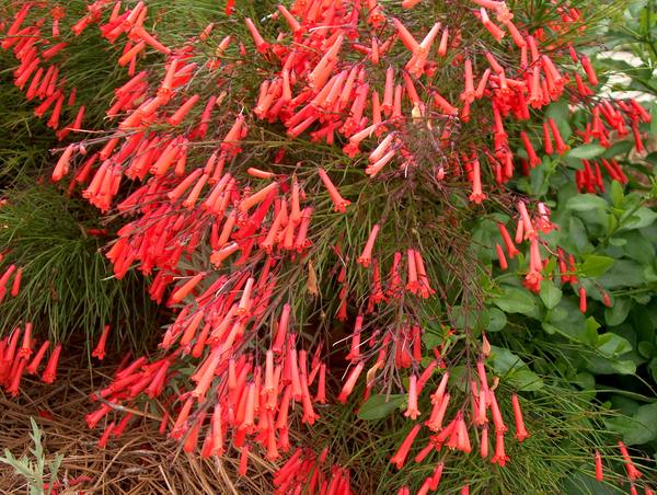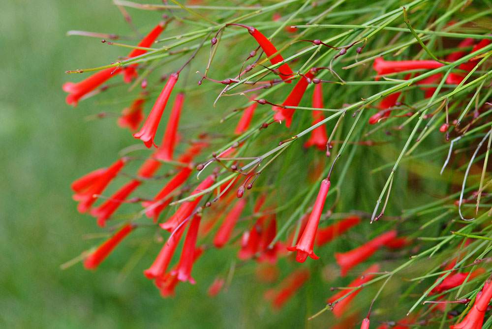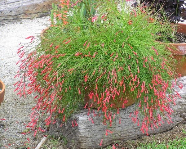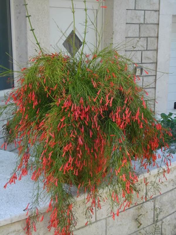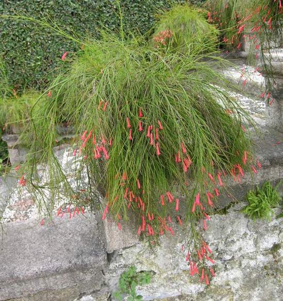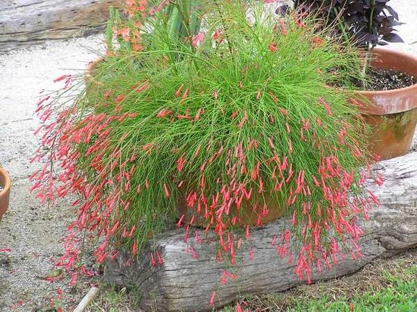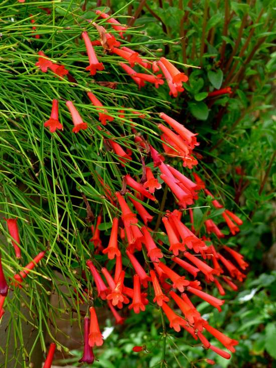 نام انگلیسی: fountainbush, firecracker plant, coral plant, coral fountain, coralblow and fountain plant, Russelia juncea