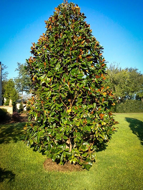 ریشه های این گیاه ممکن است به پیاده رو نزدیک درختان اسیب برساند.تاج متراکم این گیاه باعث سایه اندازی کامل و در نتیجه از رشد کامل گل ها در داخل تاج و همچنین زیر درخت جلوگیری می کند مگر اینکه مکان کاشت درخت طوری انتخاب شود که در طول روز مقداری نور آفتاب دریافت کند.ماگنولیا از جمله درختانی است که به عنوان گیاه تاکیدی در فضاهای چمن کاری شده استفاده می شود.
