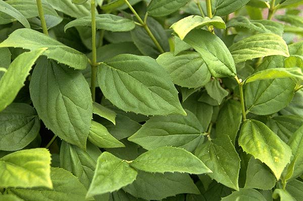 برگ : برگ های ساده ، متقابل با دندانه های تنک و در سطح تحتانی روی رگ برگ ها کرک دارد.