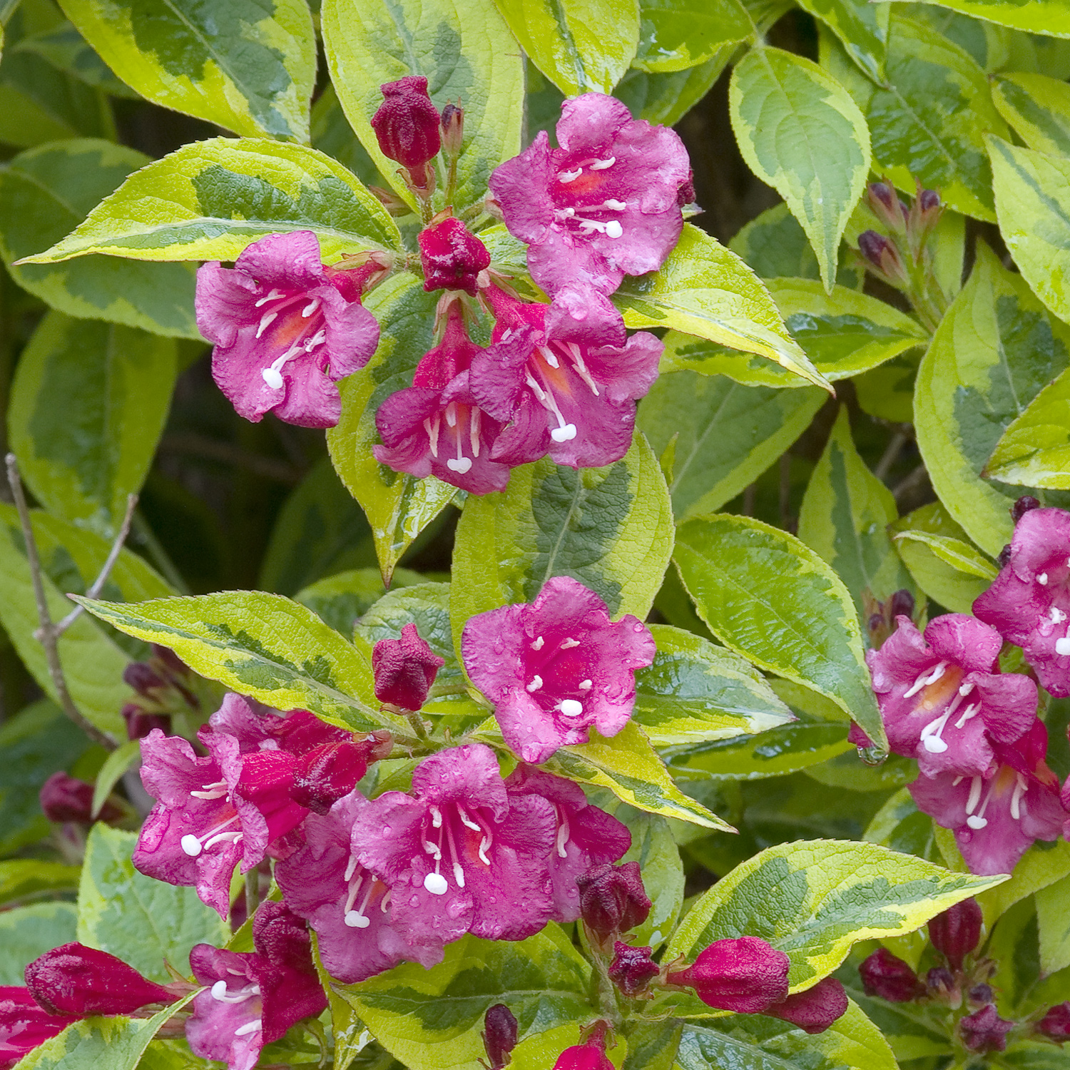 زیبایی اصلی وایگلیا مربوط به زمان گلدهی آن در اواسط بهار است و آن موقعی است که شاخه های کمانی و نسبتا اویز آن غرق گل می شود.گل های قیفی شکل و به شکل گل های گل انگشتانه است. برگ های سبز تیره بوده و تا اندازه ای براق هستند. این گونه وایگلیا دارای رقم ابلق نیز می باشد. در این رقم گیاه کوچکتر بوده و حاشیه برگ ها به طور نا منظم به رنگ کرم تا سفید در می اید. خاک متوسط، ابیاری معمولی و مقداری هرس سالیانه سبب می شود وایگلیا به فرم مناسب خود رشد کند. بعد از گلدهی شاخه های گل دهنده را تا محل یک رشد جدید هرس کنید، و در هر شاخه به دو جفت شاخه جدید اجازه رشد دهید. شاخه های قدیمی که رشد قابل قبولی ندارند را از نزدیک زمین هرس کنید. از این درختچه می توان در کاشت حاشیه ای و ایجاد توده گیاهی مملو از گل در بهار و همچنین به عنوان گیاه زمینه استفاده کرد.