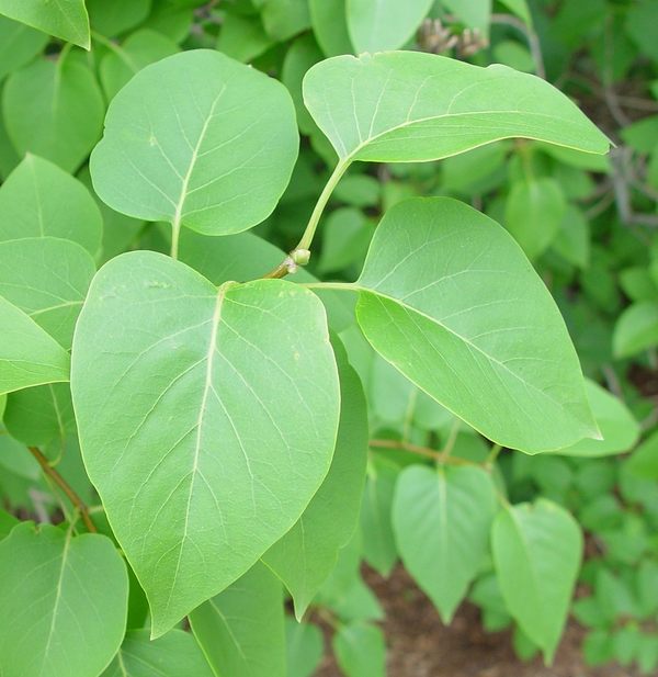 رنگ برگ ها: برگهای آن ساده، 4 تا 12 سانتی متر طول و تا 8 سانتی متر عرض به رنگ سبز روشن و گاهی مایل به زرد ، بیضی و قلبی شکل ، با رگه هایی میباشد