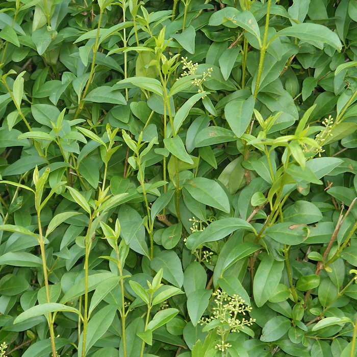 گیاه برگ نویا ترون ابلق وسبز-درختچه نیمه خزان کننده با برگهای بیضی شکل کشیده و هرس پذیر و نوک دار میباشد. این گیاه کم توقع و مقاوم در برابر سرما و شرایط نامناسب است.