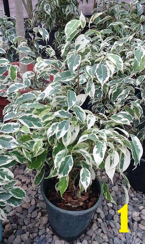 معمولاً بنجامین را به دلیل حساسیت بالا و مقاومت کم در برابر عوامل محیطی روی فیکوس بنجامین پیوند می زنند تا مقاوم تر شود که اگر در صورت مشاهده برگ های سبز یکنواخت چون مربوط به پایه است بهتر است قطع شوند تا گیاه ابلق بهتر رشد کند.