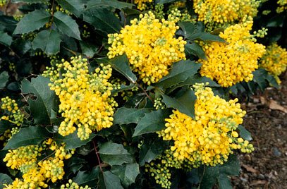 بومیان آمریکا از ساقه گیاه ماهونیا برای تولید رنگ زرد استفاده میکنند.